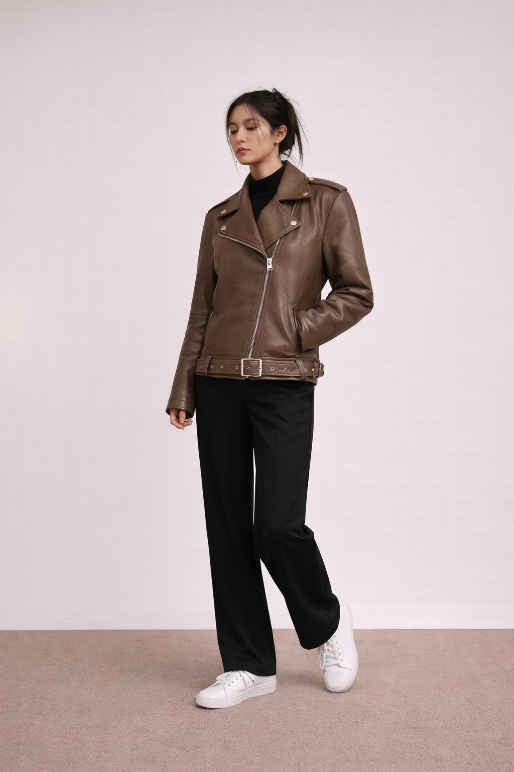$50,000.00Campera estilo biker confeccionada en material símil cuero de acabado suave y levemente satinado