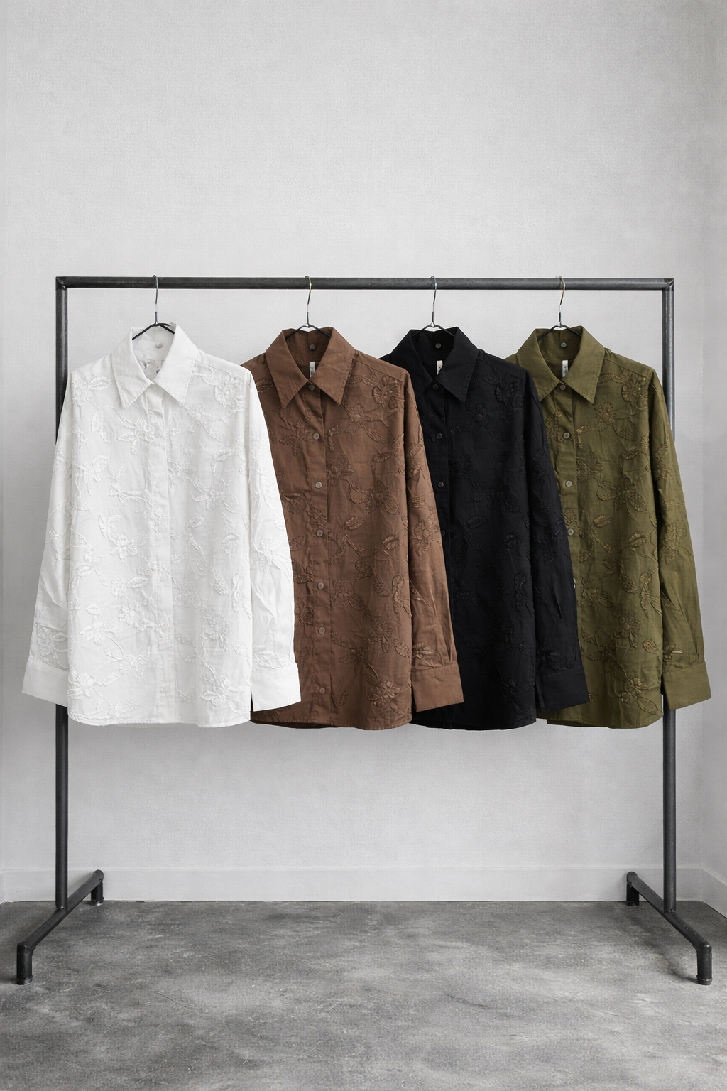 $11,000.00Camisa oversize mangas largas con hombros caídos con un bolsillo delantero lateral y dos botones en cada manga. Cierre con cinco botones del mismo color.