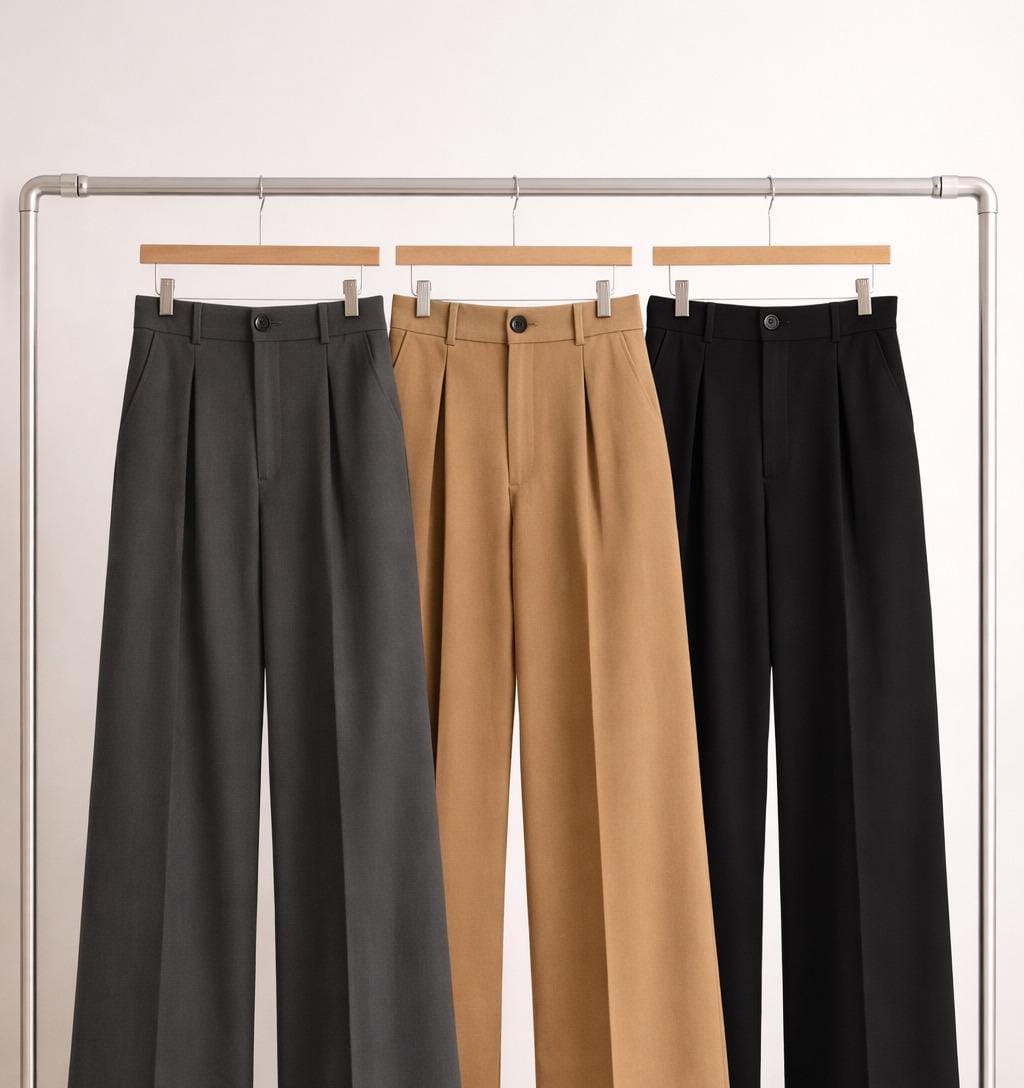 Pantalón palazo de tiro alto con pasa cinto, cierre frontal con un botón dorado y un botón interno. Bolsillos laterales