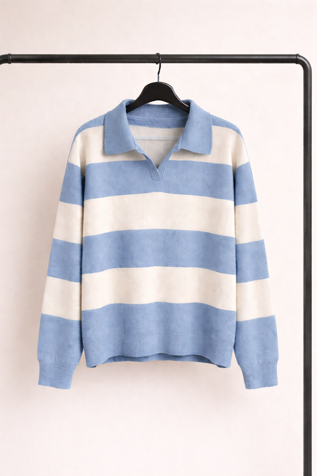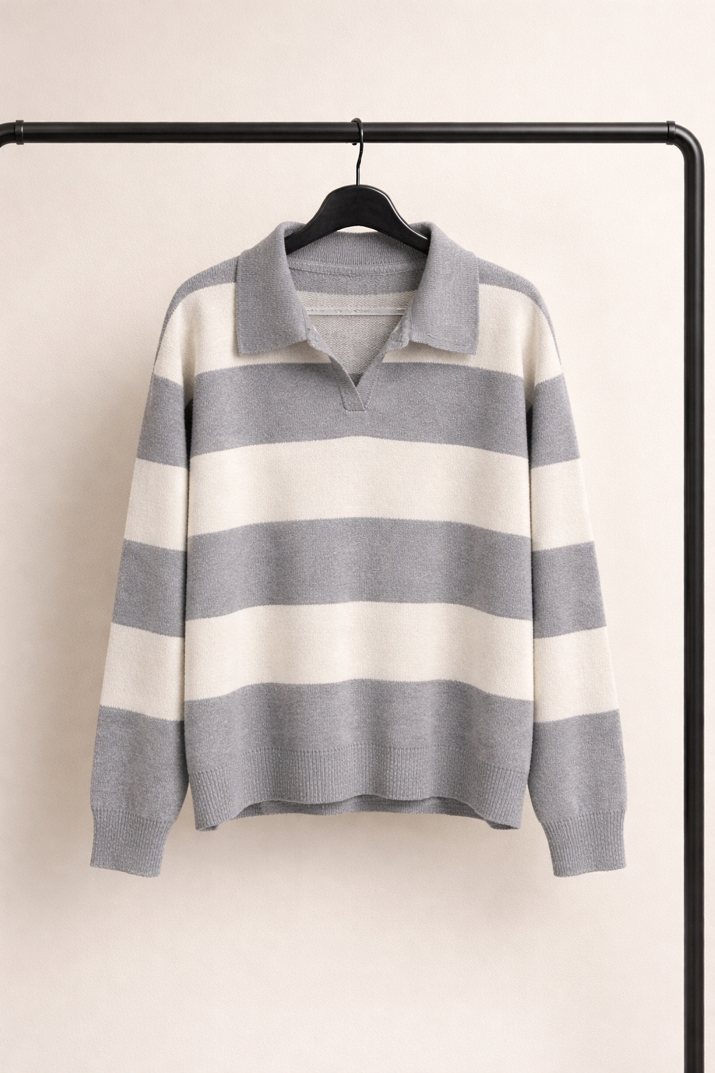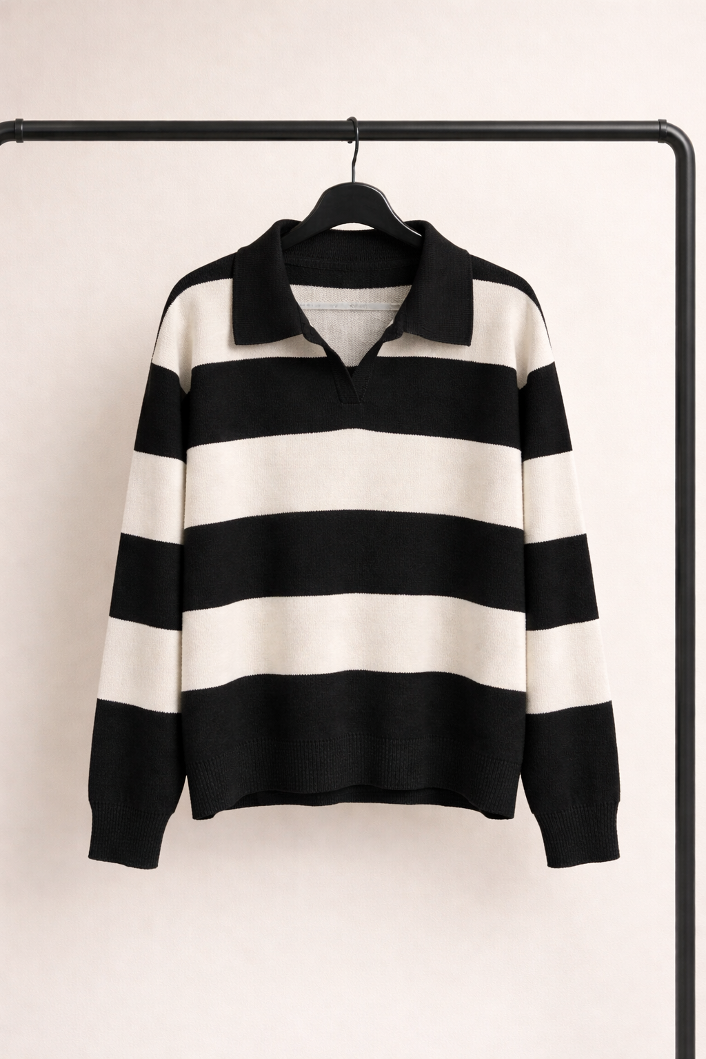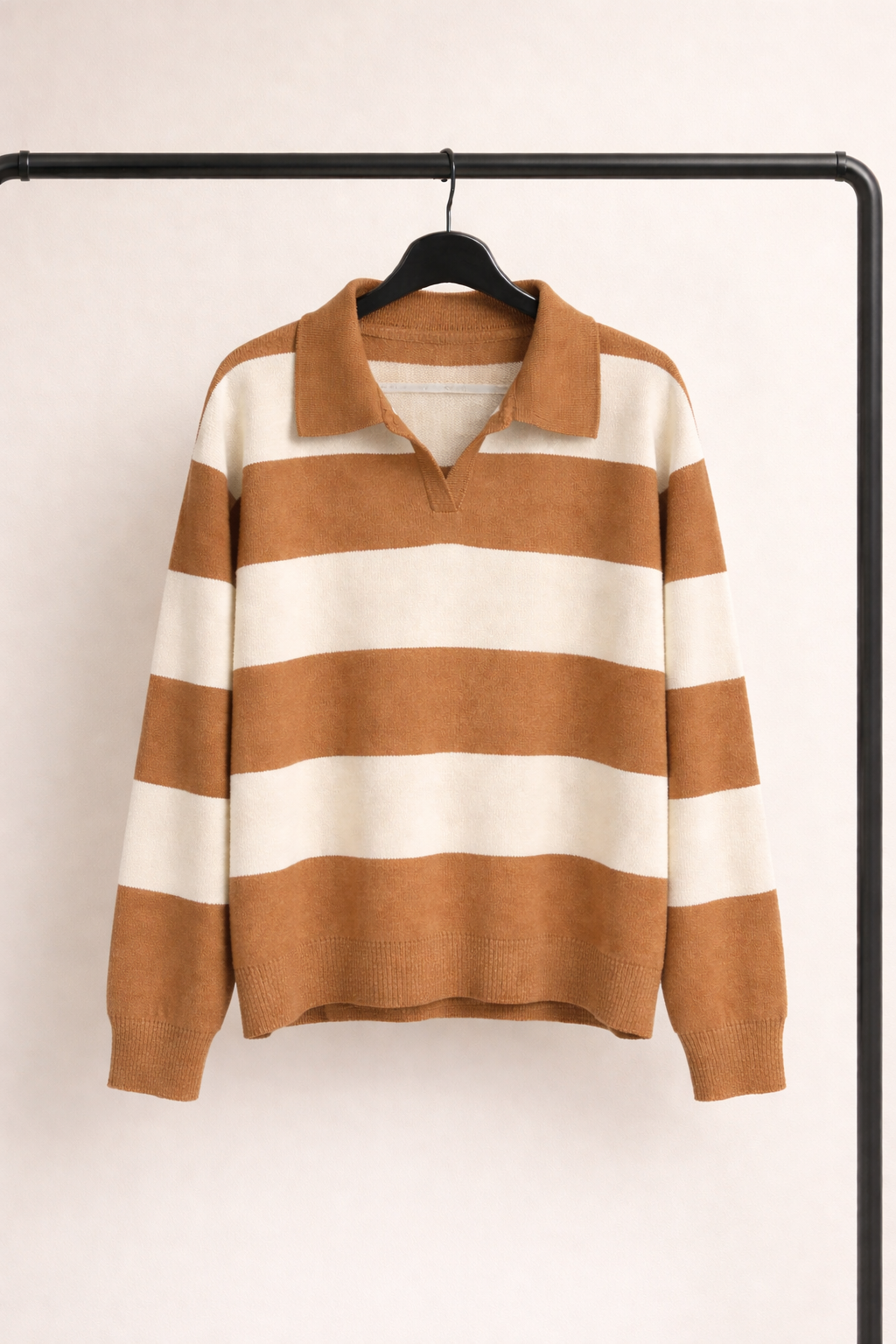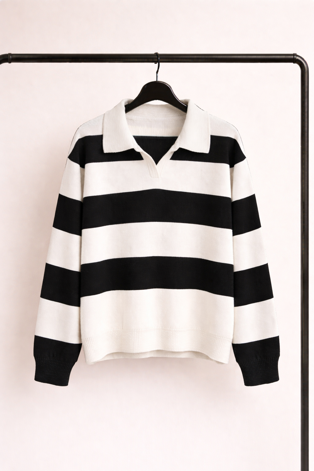 Sweater de tegido con rayas gruesas y cuello estilo chomba